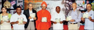 Others are (from left) Kannada lecturer at Cauvery College, Gonikoppa Dr. Rekha Vasanth, Kodagu District Kannada Sahitya Parishat President T.P. Ramesh, advocate and litterateur Balasubrahmanya Kanjarpane, Shanthamallikarjuna Swami of Arameri Mutt in Virajpet, litterateur Cheppudira P. Belliappa and Akashavani programmer Abdul Rashid.