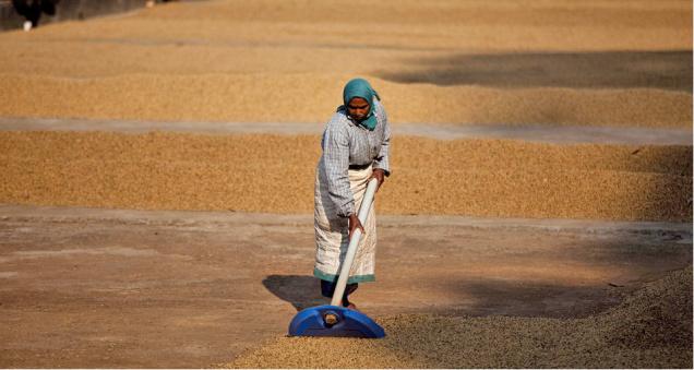 Market research: A labourer dries coffee beans in a field in Coorg, Karnataka. The Coffee Board has invited proposals from market research agencies to carry out a study this year on coffee consumption and attitude to coffee drinking.
