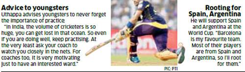 Two years later, Uthappa is IPL champion, IPL topscorer and in the Indian team. While material things do not define his relationship with Sheetal, he has been generous with gifts to one of the people who made it all possible. “It was her birthday on June 6. I bought her summer dresses. Then there was a DKNY watch she wanted. Some of us got together and bought her that.