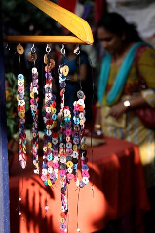 About thirty participants were seen exhibiting their wares at the stalls. Belaku, an NGO, had brought in bags, notebooks and trendy jewellery made out of recycled paper by disadvantaged village women.