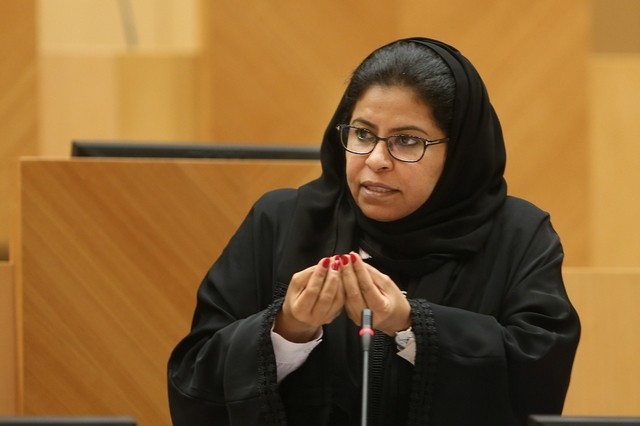Dr Mona Al Bahar speaks passionately at an FNC session in Abu Dhabi. Delores Johnson / The National